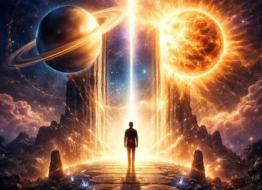 Die Sonne steht für dich, für deine Lebenskraft, deinen Ausdruck, deinen Mut, dich zu zeigen. Saturn steht für Grenzen, Verantwortung und die unerbittliche Essenz dessen, was Bestand hat. Wenn diese beiden Kräfte in Spannung geraten, entsteht ein Moment der Wahrheit. Ein kosmischer Scheideweg, an dem Entscheidungen nicht länger aufgeschoben werden können.