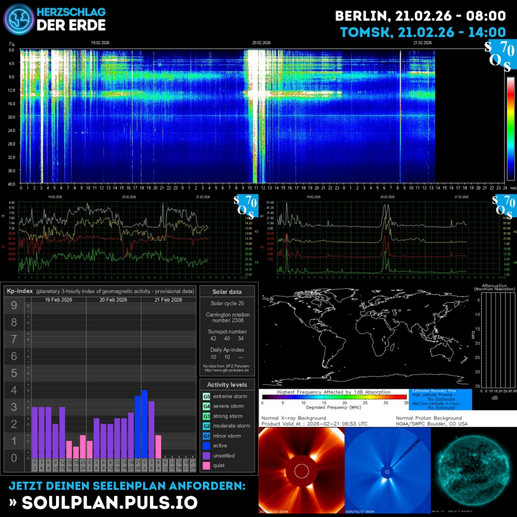 Herzschlag der Erde schreibt dazu: Fühlst du heute den Wandel in der Luft? Die Schumann-Frequenz pulsiert intensiv – spürbar in Körper, Geist & Seele. Aktuelle Energiedaten & Space Weather jetzt auf www.herzschlag-der-erde.de