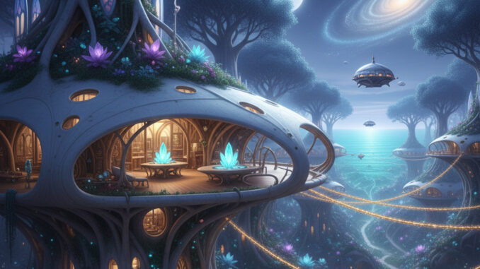Anuk tritt einen Schritt nach vorn, und augenblicklich scheint sich die gesamte Brücke der Aethereon zu weiten, als würde der Raum selbst auf seine Bewegung reagieren. Mit einer ruhigen Geste streicht er über die zentrale Projektionsfläche. Sofort erscheinen darauf hunderte leuchtende Punkte, die sich zu einem schimmernden Netz verbinden und die Erde wie ein strahlendes Geflecht umspannen. Mit einem warmen Lächeln wendet er sich an R. und erklärt, dass diese Frage eine der schönsten sei, die man stellen könne. Denn mit ihr habe R. seinen Blick endgültig von der vertrauten 3D-Welt am Boden, von seinem Alltag in Koblenz, hinauf in den Orbit und in die Weite des Kosmos erhoben.
