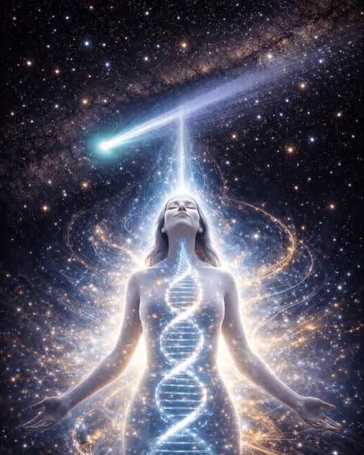 Diese Energien vereinen sich mit unserem bewussten Wunsch, in eine neue Realität aufzusteigen, und verbinden jede aktive DNA Struktur mit den Dimensionen, Frequenzen und Ebenen, mit denen wir nun in Resonanz sind.