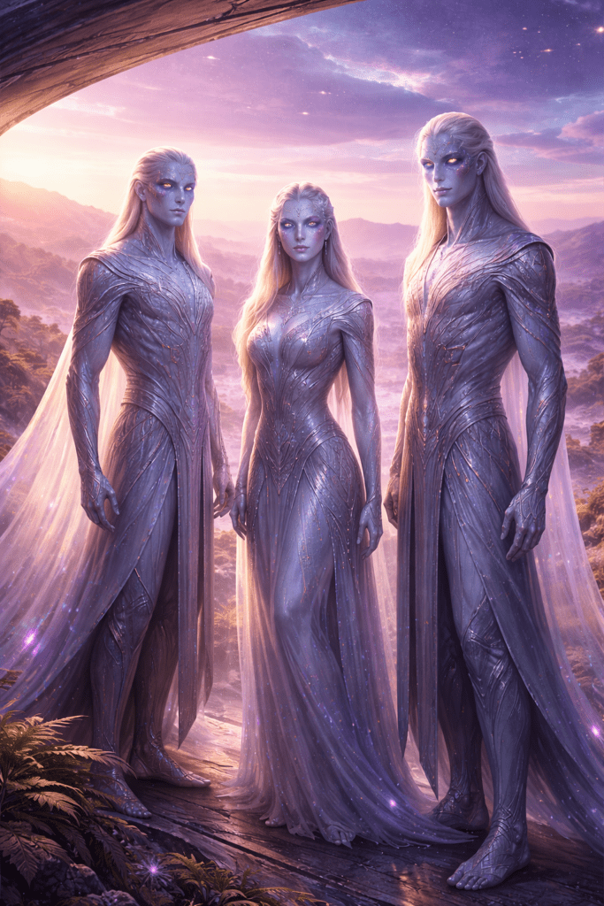 Die Zivilisation von Aryana existierte physisch in einer hochfrequenten 3D/4D-Ebene. Sie hatten feste Körper, Städte und Meere, doch ihre Materie war weniger dicht als die heutige Erdenmaterie – lichtvoller und formbarer.